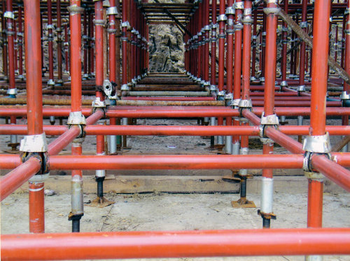 碗扣搭拆是一種具有自鎖功能的直插式新型鋼管腳手架,具有承載力大,搭建速度快,穩(wěn)定性強(qiáng),易于場地管理等特點(diǎn)。